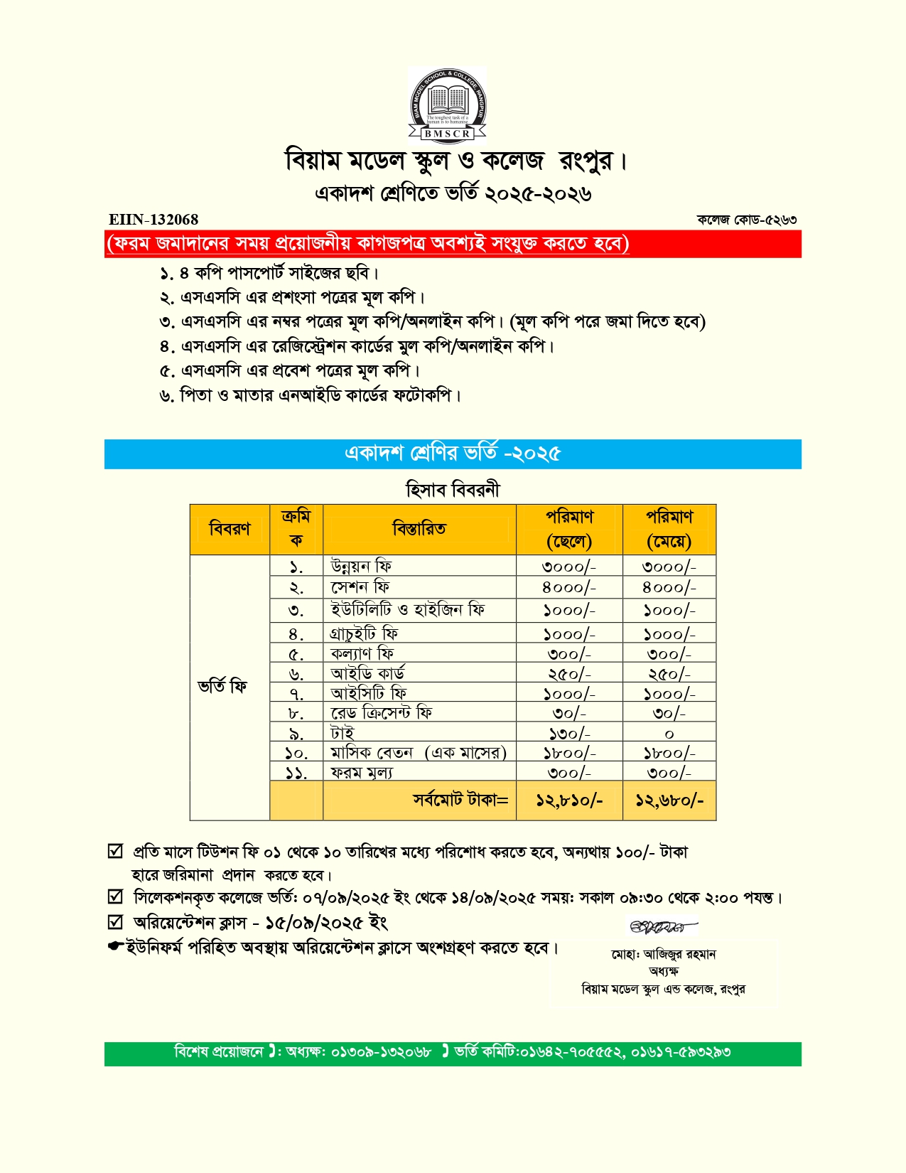 ২০২৫-২০২৬ শিক্ষাবর্ষে একাদশ শ্রেণিতে ভর্তি চলছে